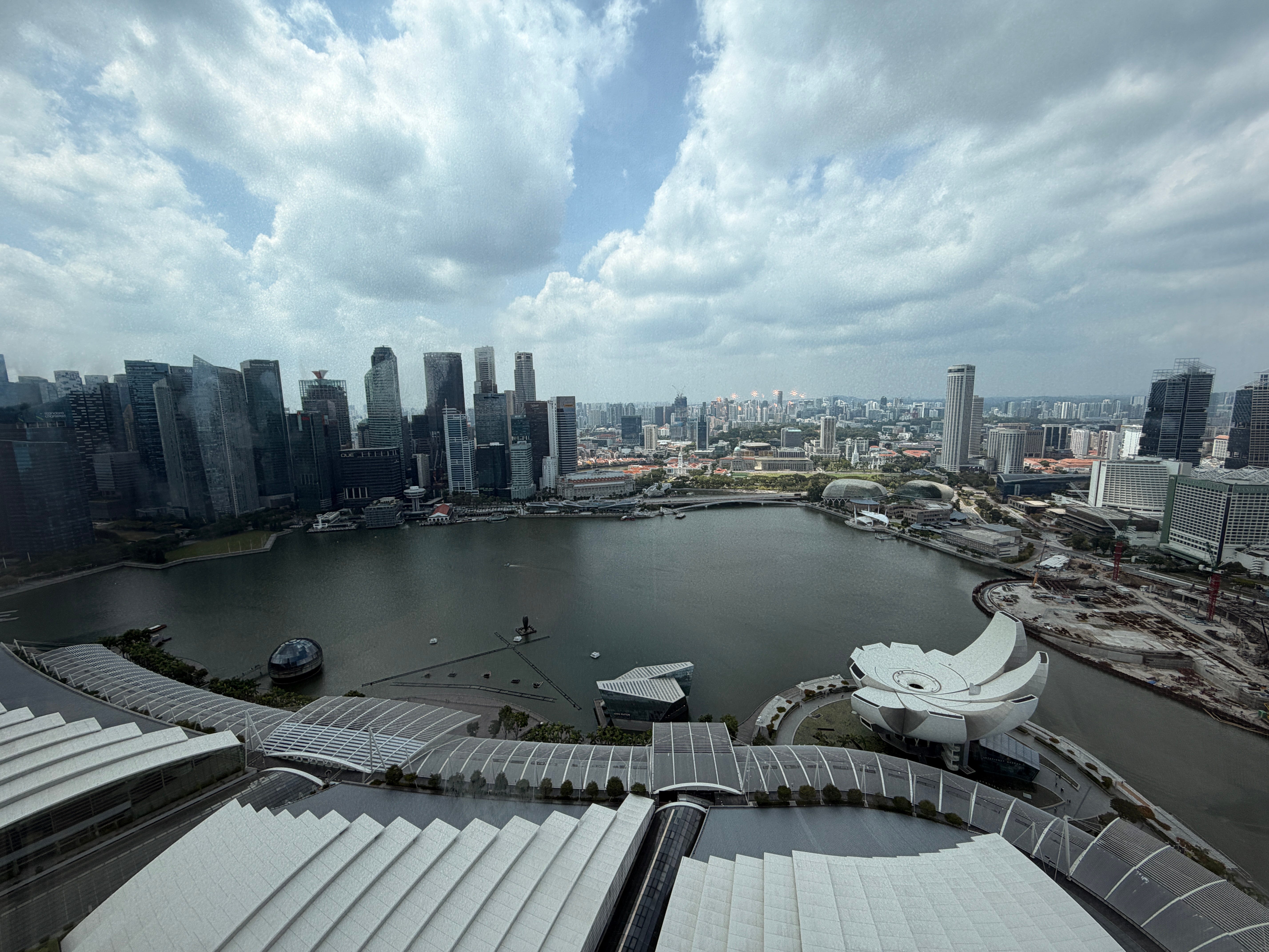 Our room was on the 52nd floor of Marina Bay Sands. Ocean view on one side, city skyline on the same side. The kind of view that makes you stand still and forget you’re holding a baby.